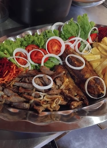 Oferecemos uma variedade de pratos, incluindo frutos do mar frescos e especialidades regionais.